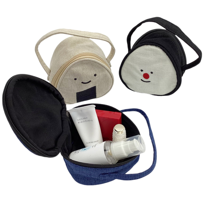 おにぎり型の可愛いポーチです。コスメケースや小物入れにしたり、バッグのなかの仕分け用など使い方はいろいろ。