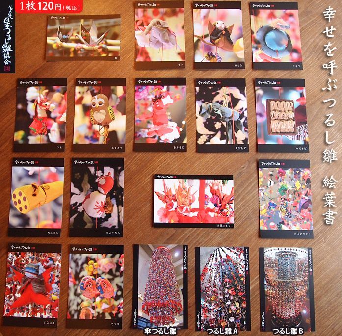 つるし雛-絵葉書 [tsurushibiina-hagaki] 越後にある幸せを呼ぶ三大つるし雛が絵葉書になって登場です。つるし雛とは、様々な小さなお人形をたくさん作りそれをすべて吊るして飾るというものです。江戸時代からはじまったとされており、ひとつひとつの人形には願いがこめられています 越後湯沢には「NPO法人日本つるし雛協会」が製作した大きなつるし雛が飾られています。お近くの方はぜひ足をお運び下さい。 ちりめんフォトフレームに飾ってみてはいかがでしょうか? ■商品詳細 サイズ:14.8×10cm(ポストカードサイズ) 紙 つるし雛-絵葉書 [tsurushibiina-hagaki] 販売価格: 114円(税別) 種類 選択 鶴__S-turu__ ぞう__S-zou__ おさる__S-saru__ りゅう__S-ryu__ うま__S-uma__ ふくろう__S-huku__ あかおに__S-oni__ 笹だんご__S-sasa__ へぎそば__S-hegi__ れんこん__S-ren__ ひょうたん__S-hyou__ 折鶴とまり__S-ori__ いろとりどり__S-iro__ さるぼぼ__S-bobo__ ぞうり__S-zour__ 傘つるし雛__S-kasa__ つるし雛A__S-hia__ つるし雛B__S-hib__ 販売価格: 114円(税別) 数量: 返品特約に関する重要事項 お問い合わせ だんだんどーもの人気商品 【ご朱印帳いろいろあります】 【ご朱印帳入(がま口・巾着・ポシェット)】