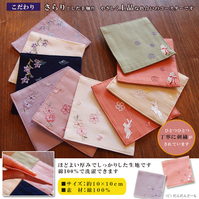 刺繍 和柄コースター さらり ひょうたん なでしこ 桜 豆 [coaster-sarari]