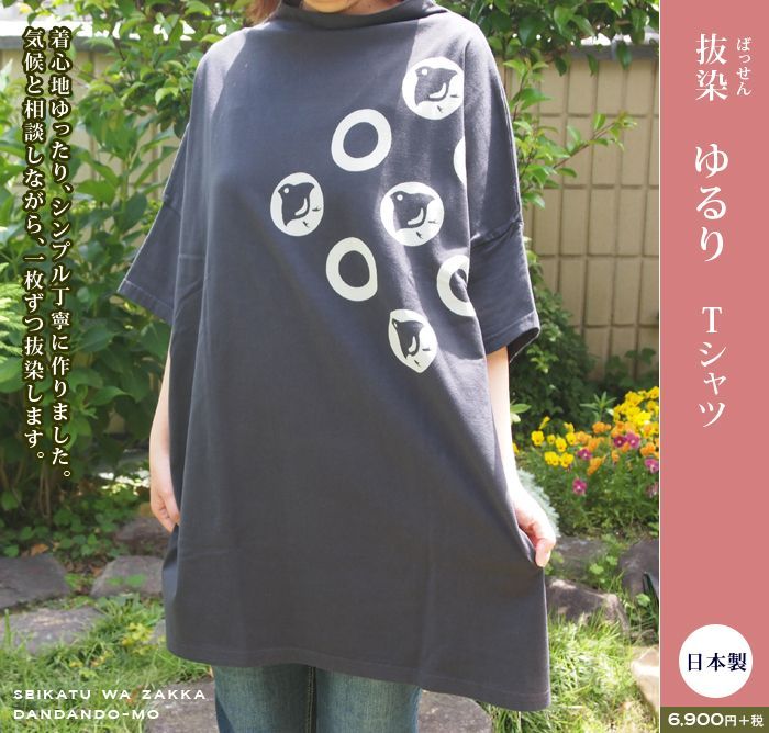 抜染ゆるりTシャツ(日本製) [tsyatsu-bassenyururi] 日本で縫製、染めあげました。 気候と相談しながら1枚ずつ抜染しました。 着心地はゆったり、デザインはベーシックに。 すっぽりと体を包み込みます。 シンプル丁寧にこだわって作られたTシャツです。 ■商品詳細 綿100% サイズ:フリーサイズ 身丈:約80cm 身巾:約67cm 肩巾:約73cm 袖丈:約11cm 抜染ゆるりTシャツ(日本製) [tsyatsu-bassenyururi] 販売価格: 6,900円(税別) 柄 選択 水玉に千鳥__S-cido__ バラ唐草__S-bara__ 桜__S-saku__ 捻じ梅__S-neji__ 販売価格: 6,900円(税別) 数量: 返品特約に関する重要事項 お問い合わせ だんだんどーもの人気商品 【ご朱印帳いろいろあります】 【ご朱印帳入(がま口・巾着・ポシェット)】