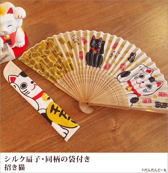 シルク扇子・扇子袋付 招き猫 [sensu-silk-manekine]